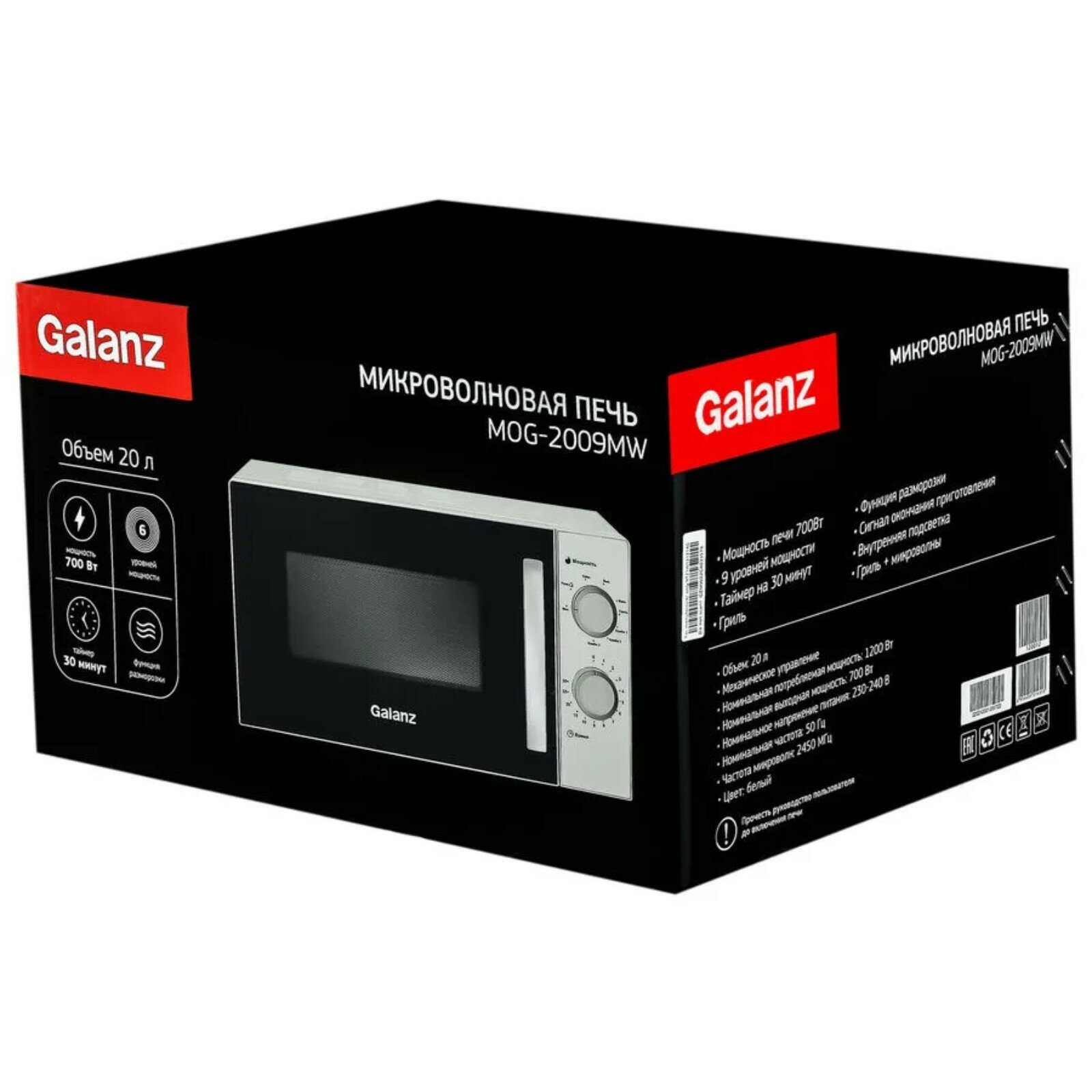 Микроволновая печь Galanz MOG-2009MW, 700 Вт, 20 л, белая интересное: