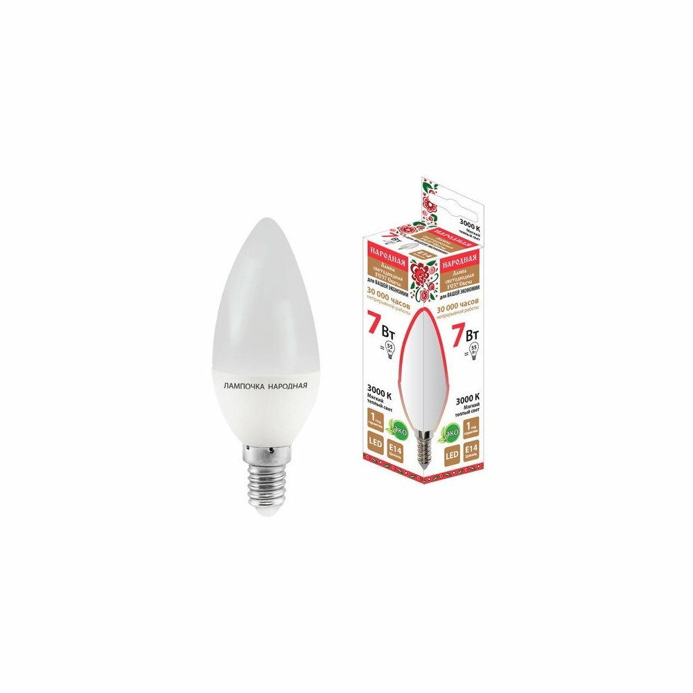 Лампа светодиодная НЛ-LED-A55-7 Вт-230 В-3000 К-Е27, (55x98 мм), Народная 10 шт