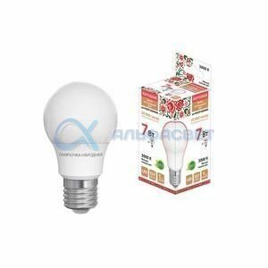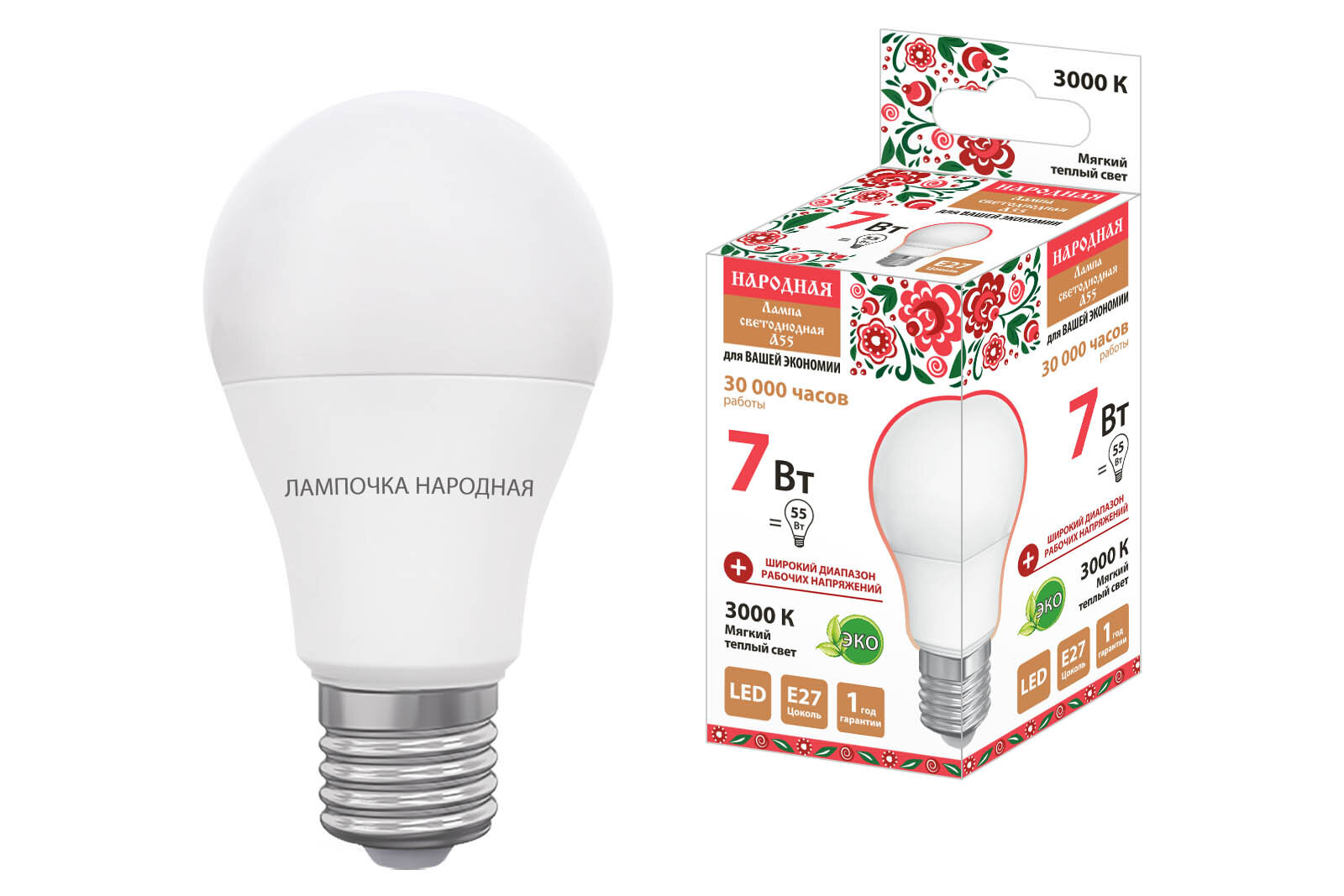 Лампа LED А55 7W E27 220В 3000К (55х98 мм), Народная TDM SQ0340-1505