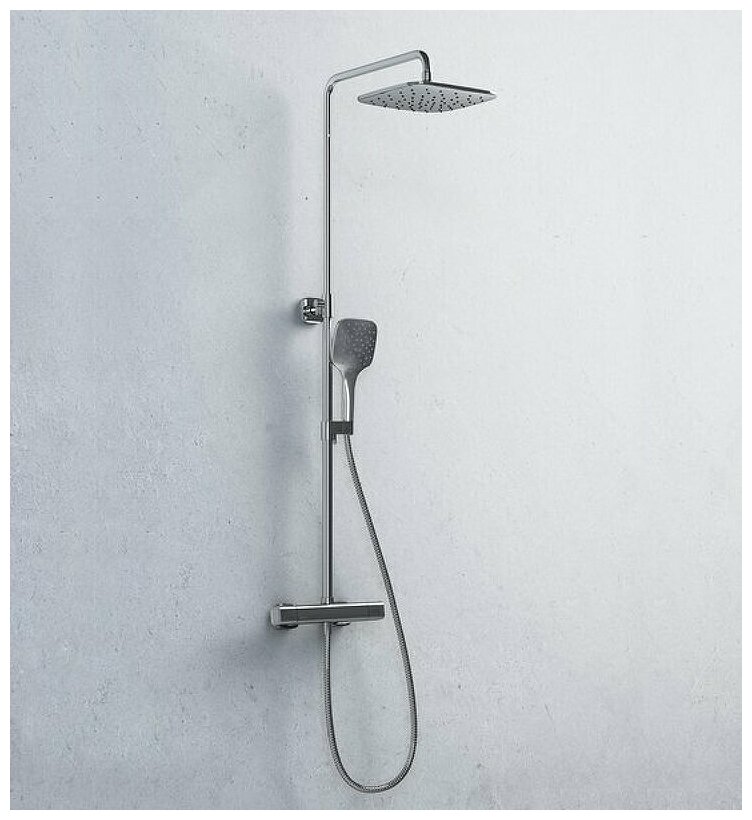 Душевая система без излива Ravak 10°, арт. X070103, 2 режима, 25 см, square, термостат, верхний душ, с лейкой