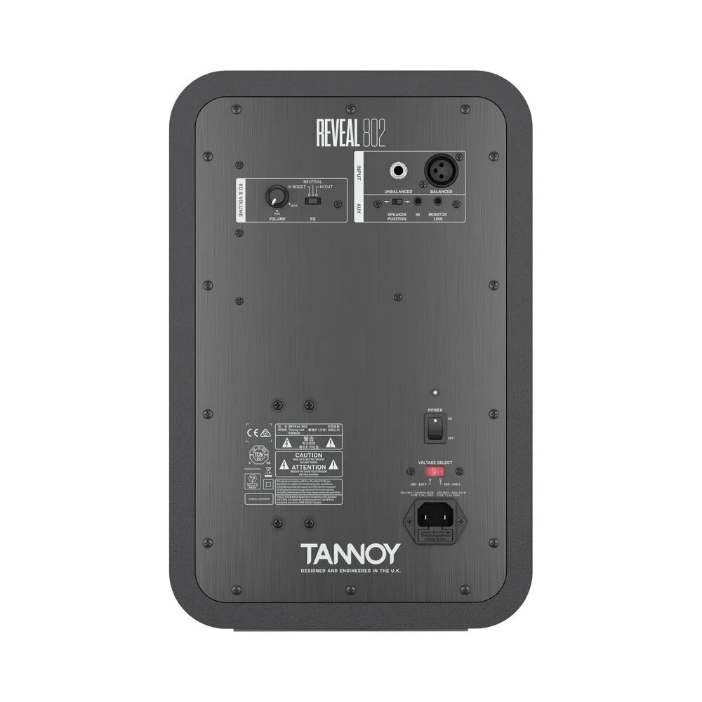 Tannoy REVEAL 802 активный монитор ближнего поля. 100Вт 8"(200мм) НЧ/СЧ драйвер и 1"(25мм) soft dome твитер. SPL 114дБ (макс.) Частотный диапазон 42Hz