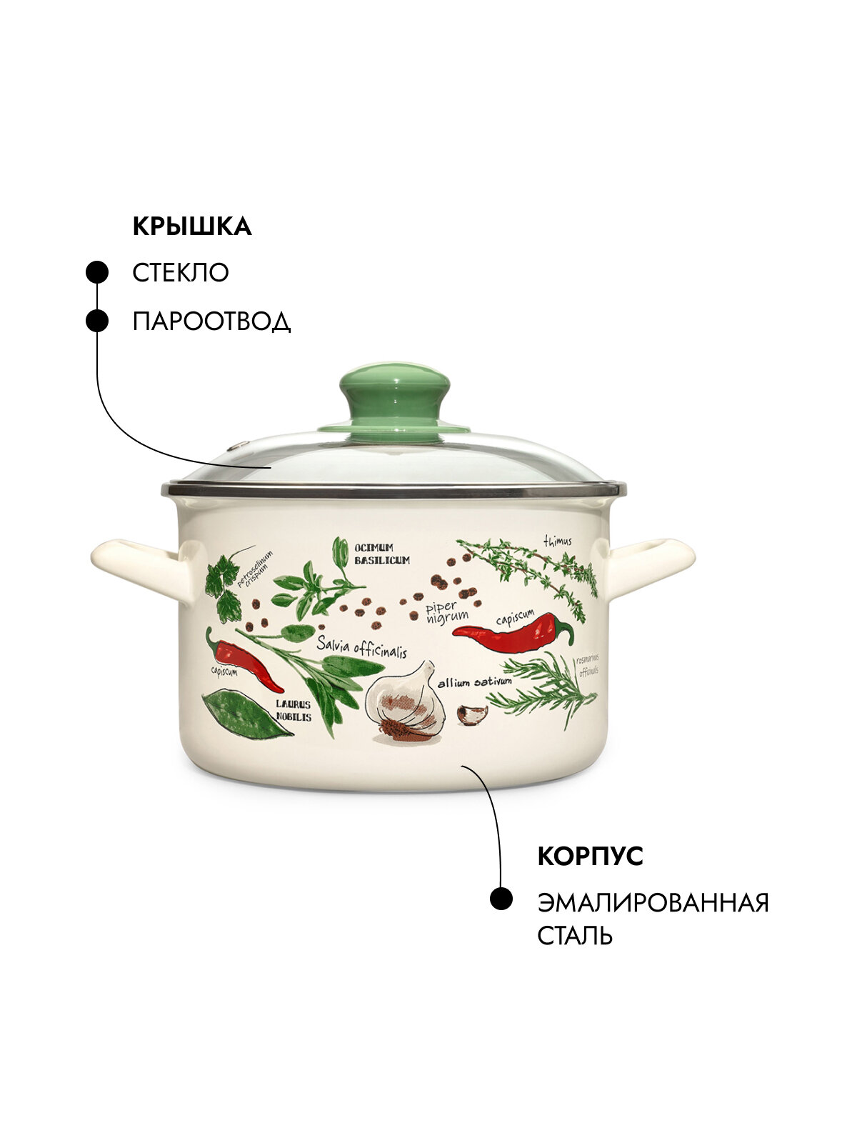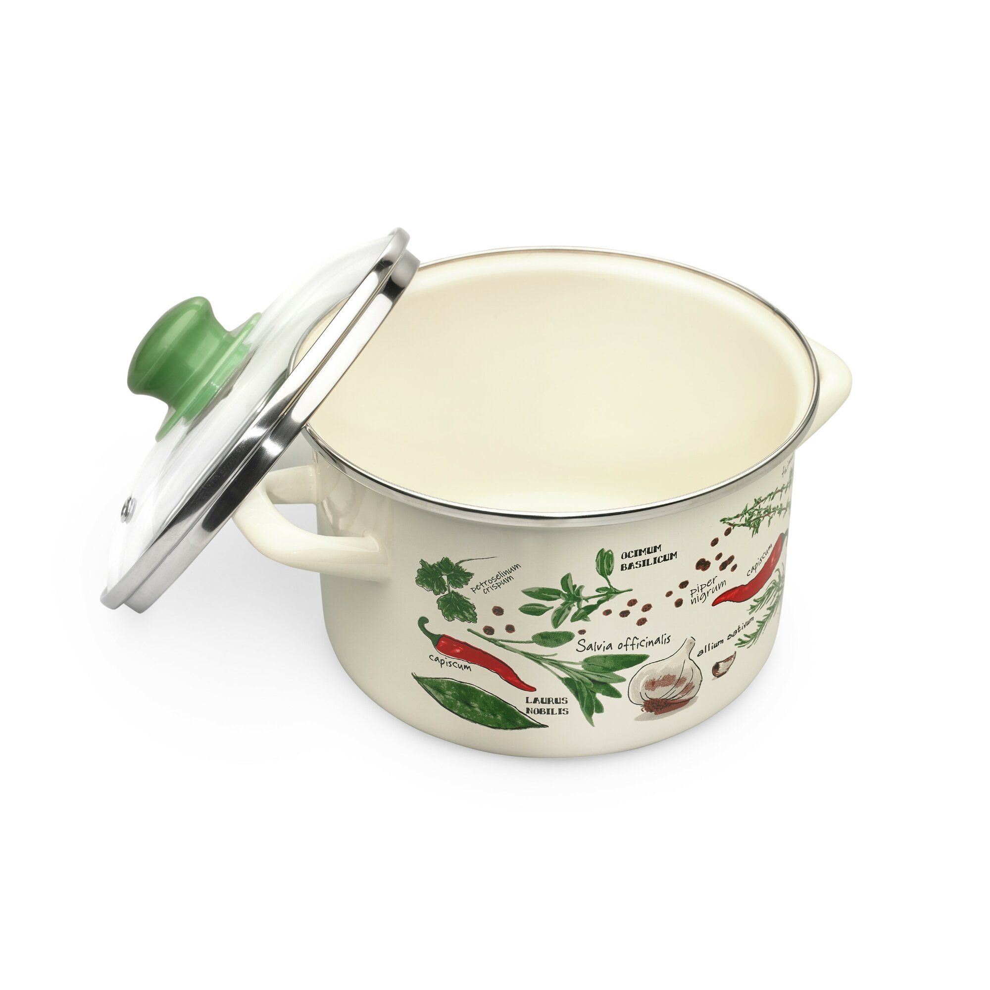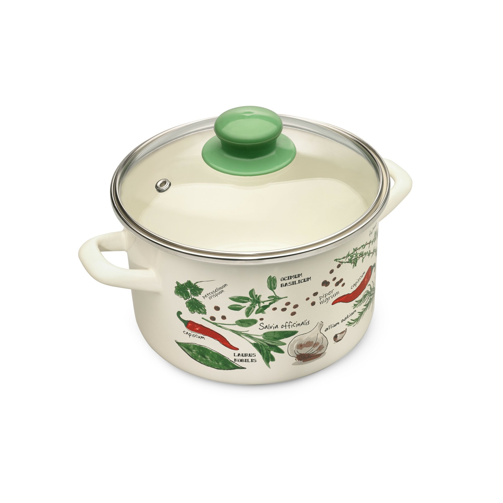 Кастрюля глубокая эмалированная со стеклянной крышкой, 2л, Специи