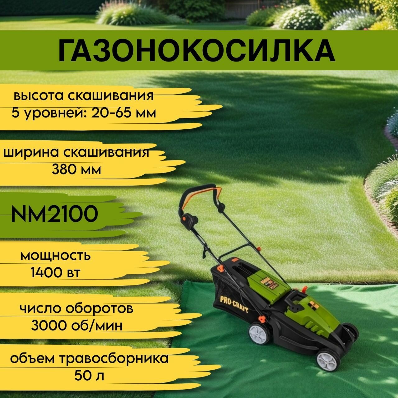 Электрическая газонокосилка ProCraft NM2100, 2100 Вт, 38 см