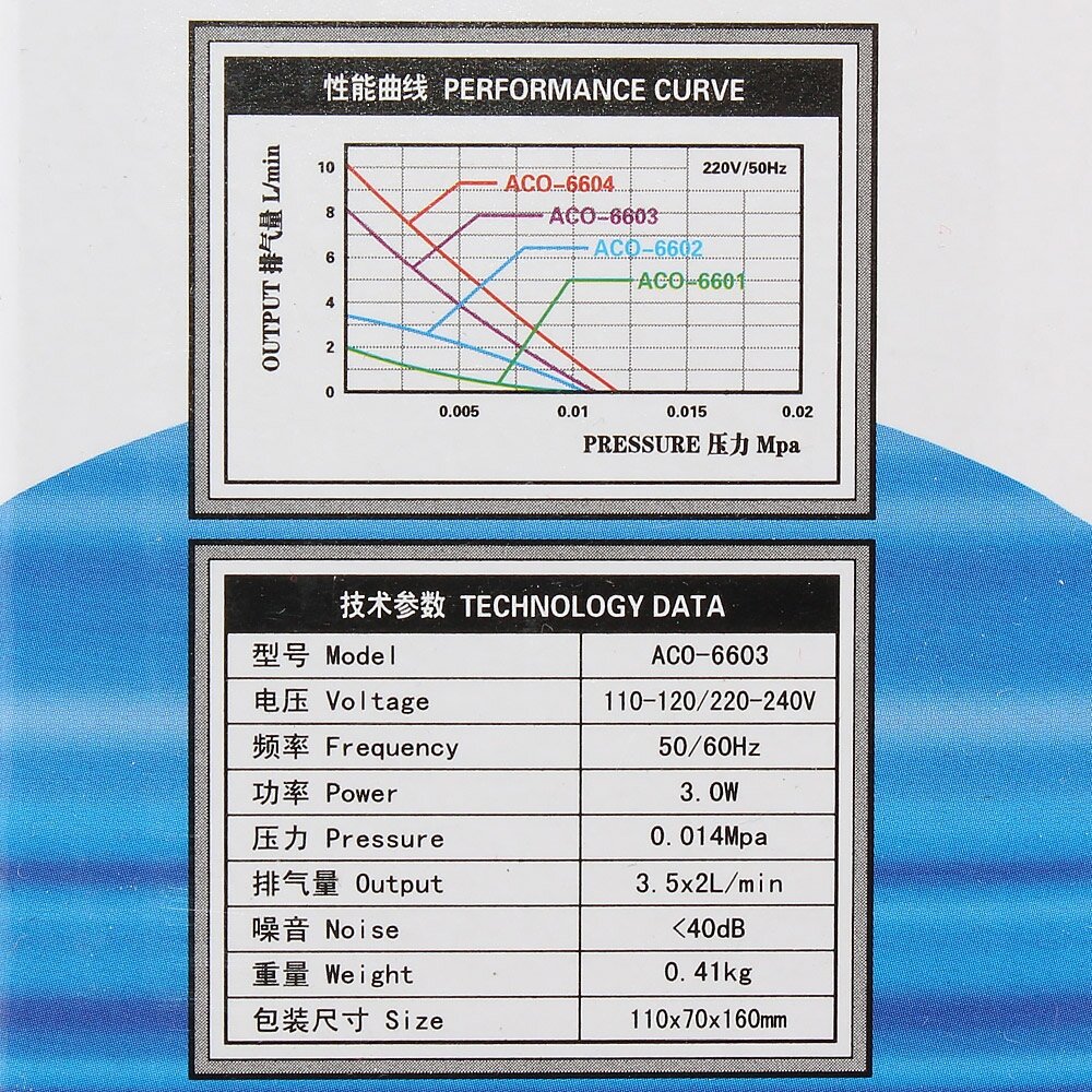 Компрессор для аквариума Hailea ACO-6603 с регулировкой потока (3W; 2 х 3,5л/мин)