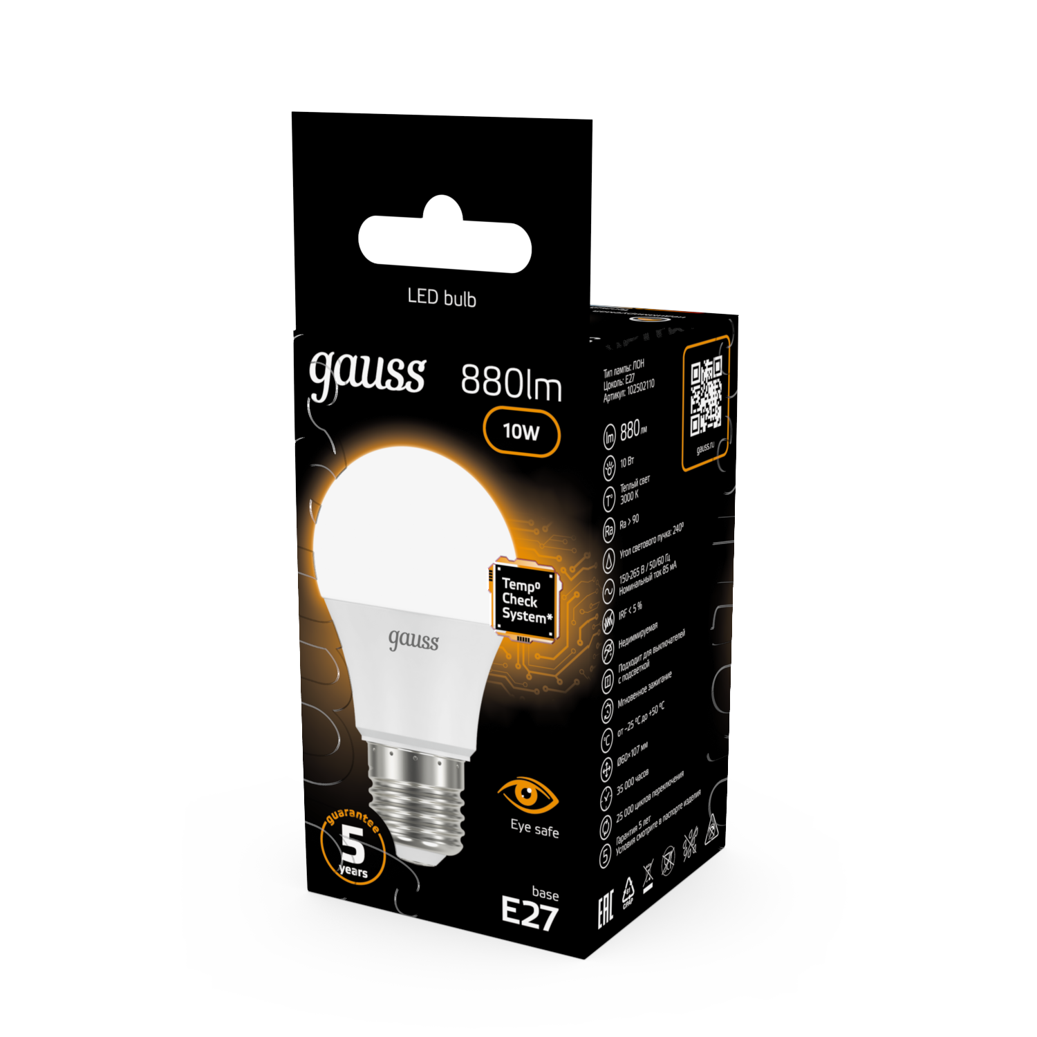 Упаковка ламп LED GAUSS E27, шар, 10Вт, A60, 10 шт. [102502110]