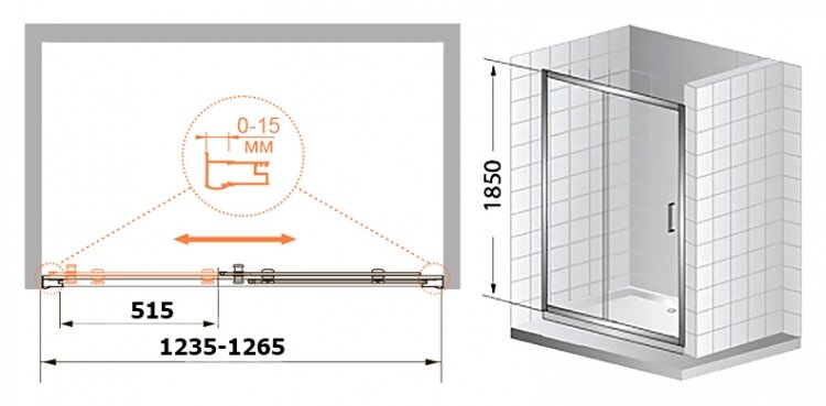 | Дополнительная информация | Комплектация | Душевая дверь - 1 шт. ,Инструкция - 1 шт.;Ширина. мм | 1250;Толщина полотна двери, мм | 5;Материал полотна двери | стекло;Материал профиля | алюминий;Монтаж | на поддон/напольный;Поверхность | глянцевая;Дополнительная информация | дверь имеет регулируемую ширину на 3 см; |
