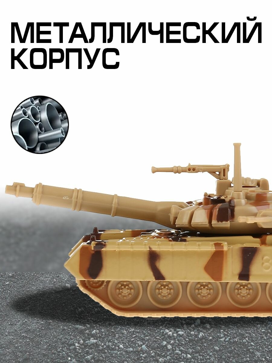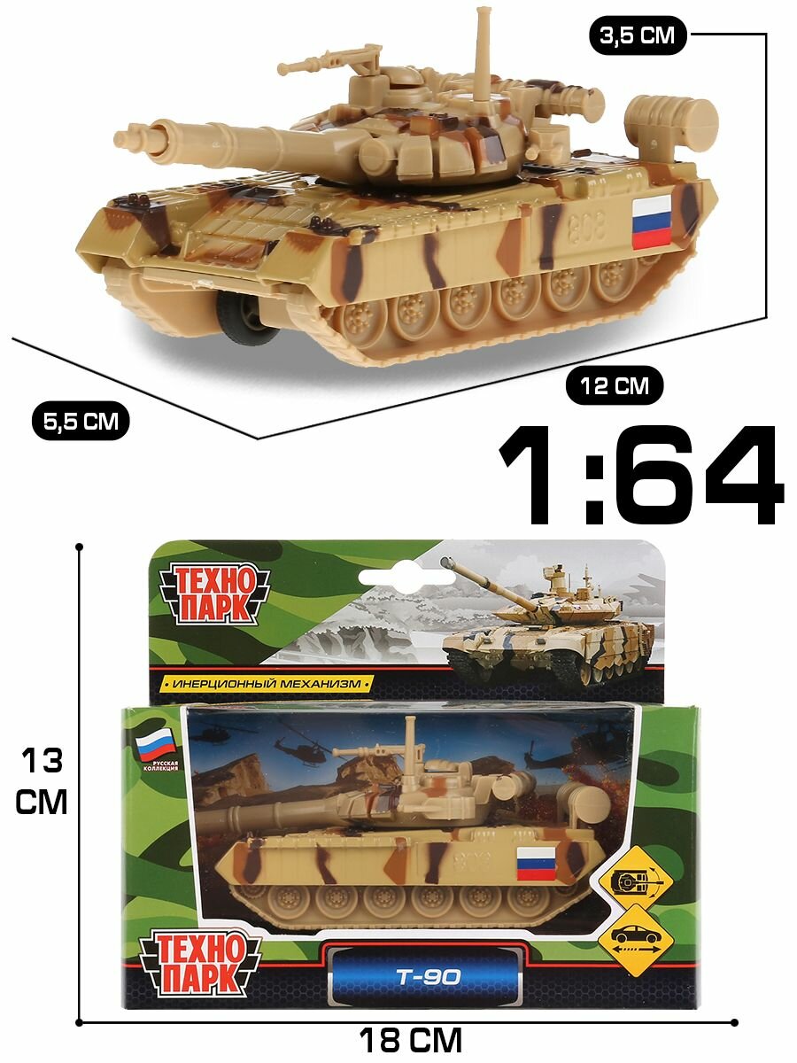 Танк металлический инерционный Т-90 12 см в пустынном камуфляже, поворачивается башня технопарк SB-16-19-T90-S-WB