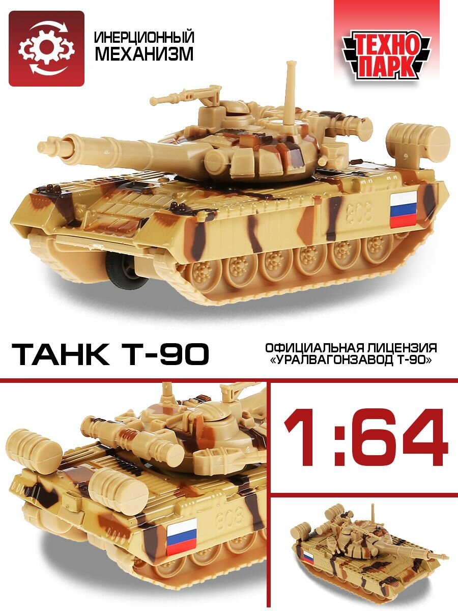 Технопарк. Танк "Т-90" арт.SB-16-19-T90-S-WB 12 см, металл подвиж. дет., инерц. SB-16-19-T90-S-WB