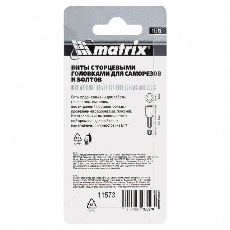 Биты с торцевыми головками Matrix 8x65 мм, 2 шт 11573 интересное: