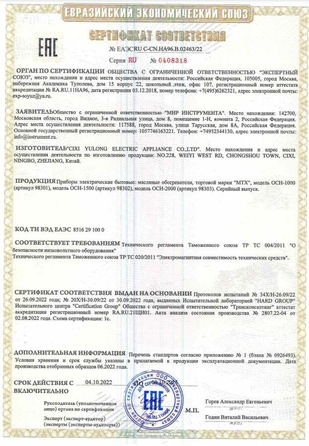 Масляный обогреватель MTX OCH-1000, 230 В, 1000 Вт // MTX 98301 интересное: