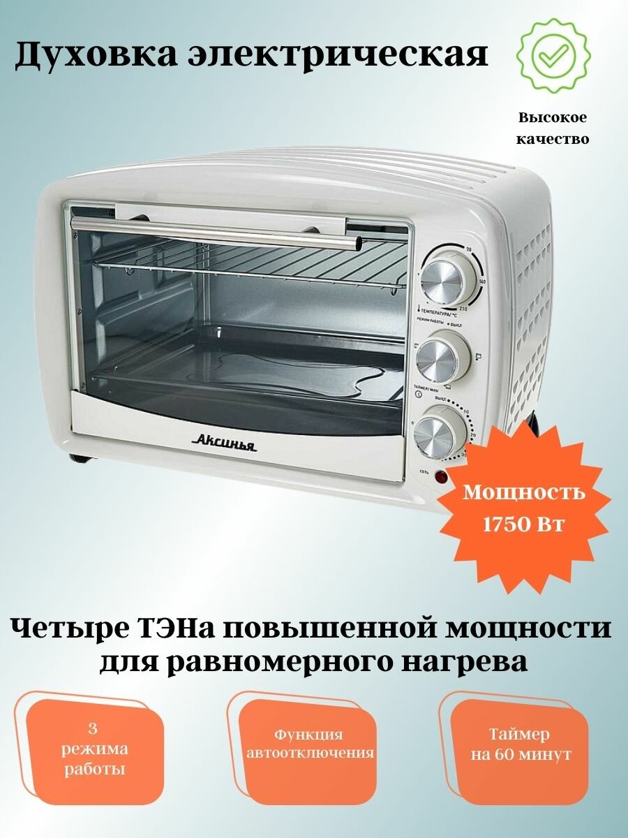 Духовка электрическая 36Л 1750ВТ 3 РЕЖ РАБ тайм 60МИН 4 ТЭНА повыш мощн БЕЛ аксинья