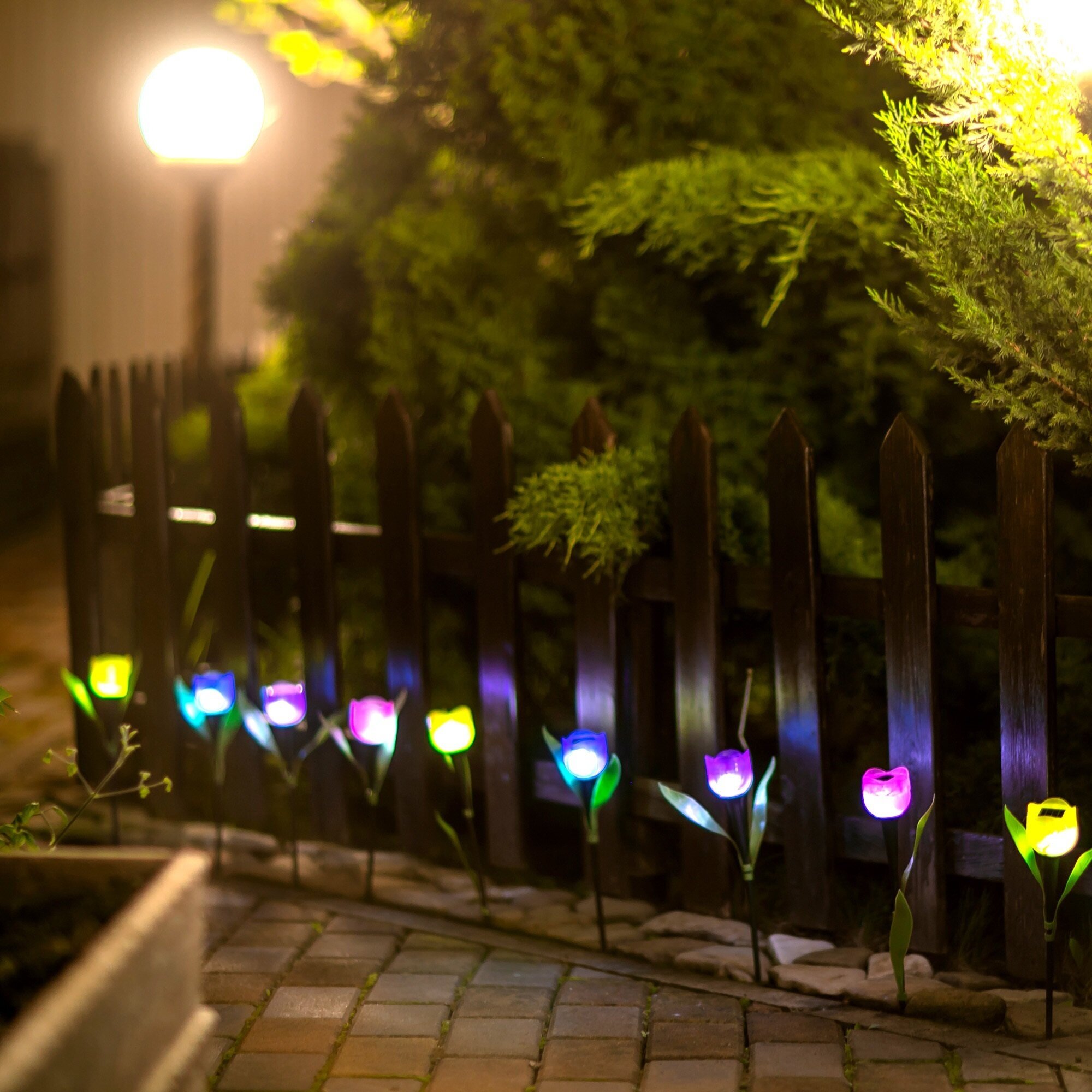Купить Садовый светильник Uniel на солнечной батарее «Лиловый тюльпан», 5 ? 30.5 ? 5 см, свечение белое