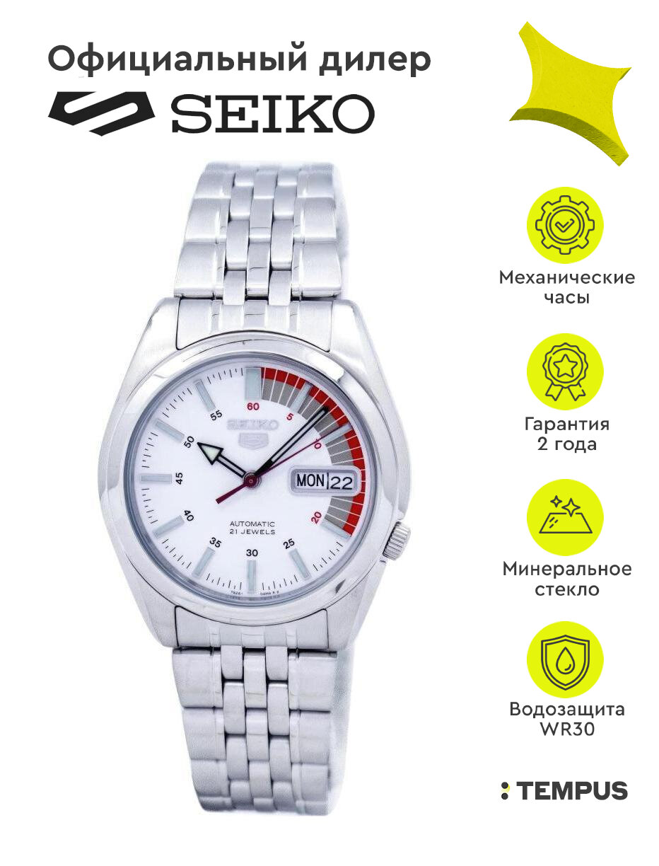 Купить Наручные часы Seiko 5 SNK369K1 (Япония), механические с автоподзаводом, белый циферблат, на браслете