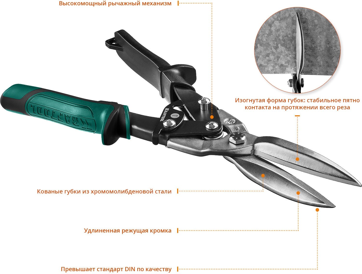 KRAFTOOL Alligator Прямые удлинённые ножницы по металлу, 290 мм, 2328-SL