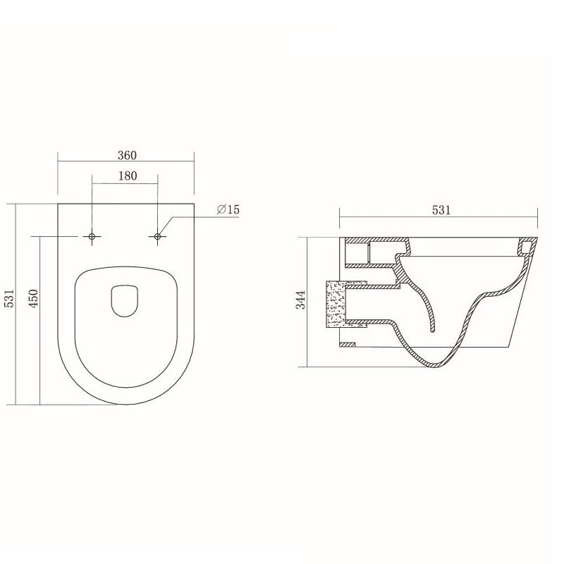 Aquatek AQ1253W-00 Бетта Унитаз подвесной 53х36 см, безободковый, белый