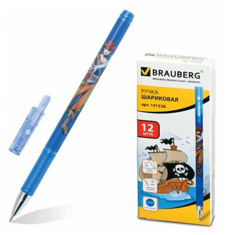 Ручка шариковая Brauberg Корсары, корпус с печатью, узел 0,7 мм, линия 0,35 мм, синяя, 1 шт (141538) интересное: