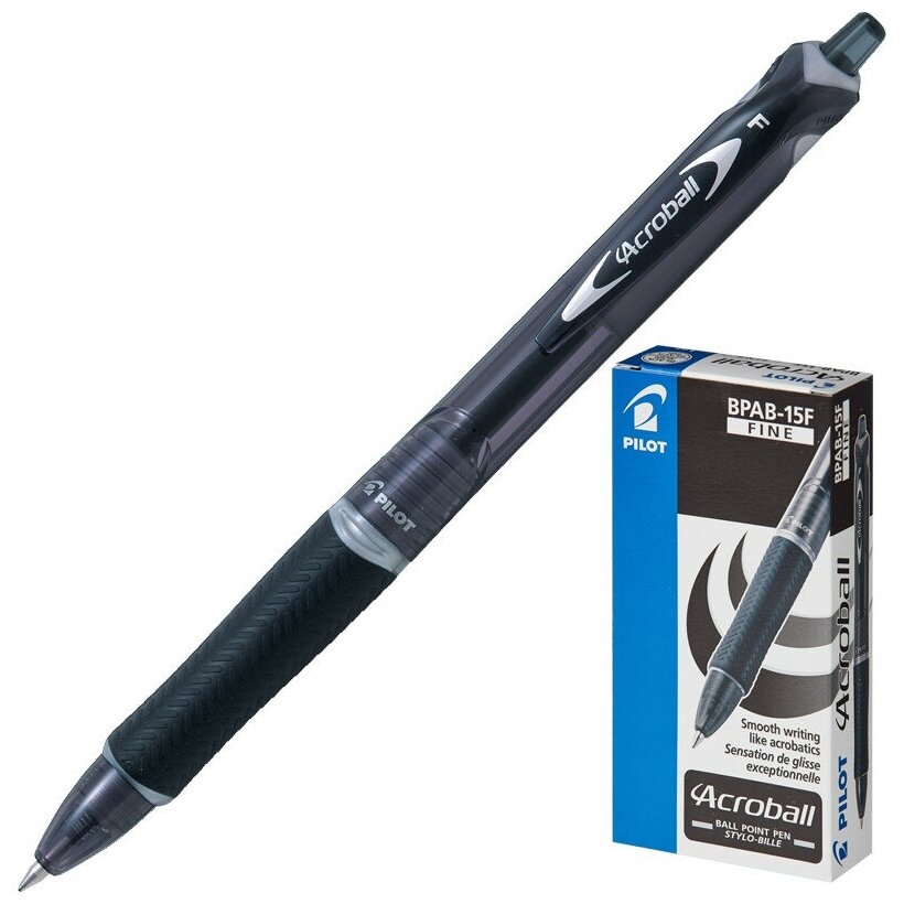 Ручка шариковая автоматическая PILOT Acroball резин. манжет черн 0,28мм ЭКО интересное: