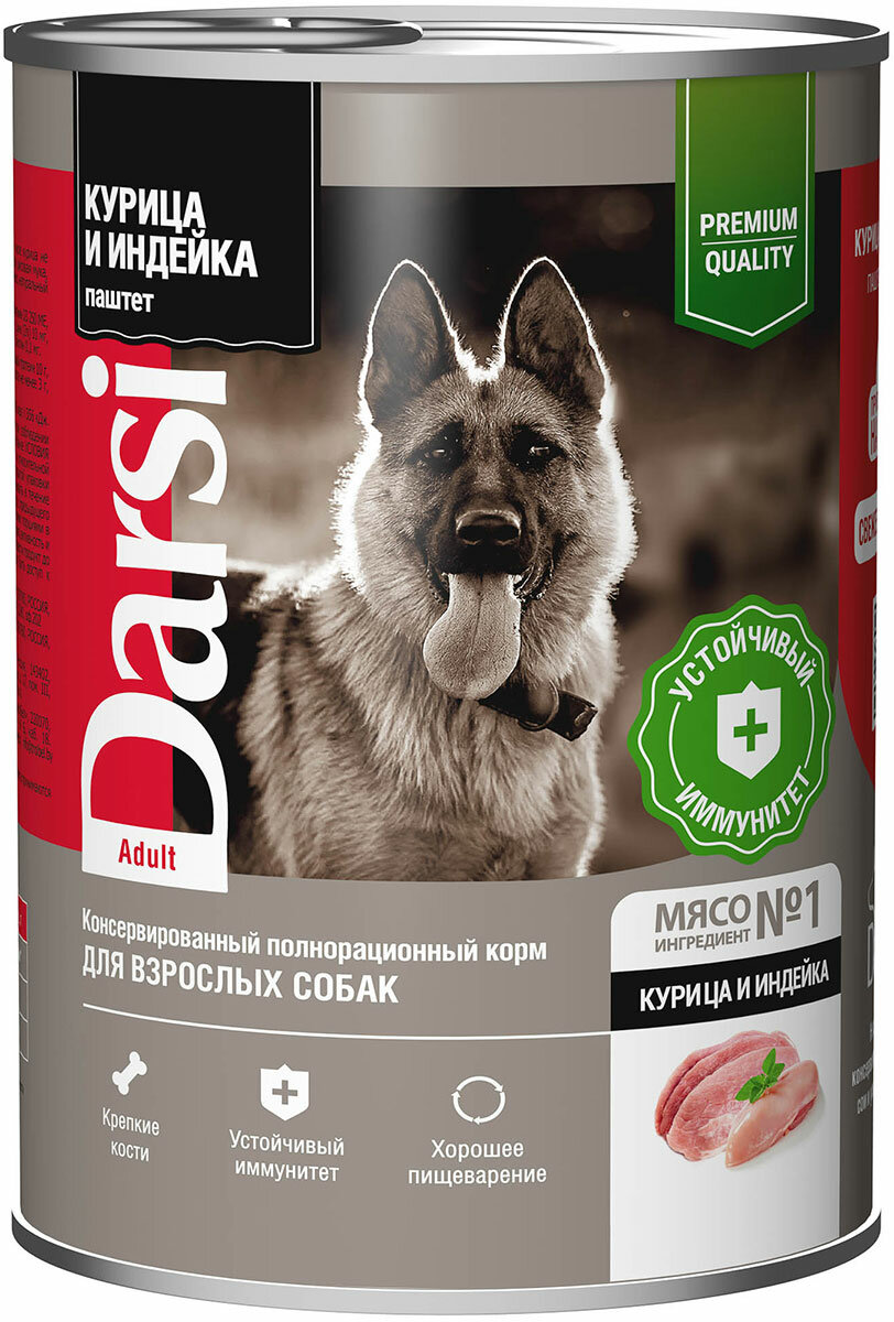 Корм Darsi (паштет) для взрослых собак "Курица и Индейка", 410г x 9 шт