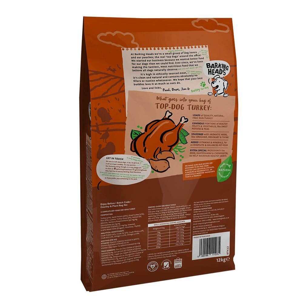 Barking Heads Беззерновой корм для собак с индейкой и бататом "Бесподобная индейка", TOP DOG TURKEY 12 кг