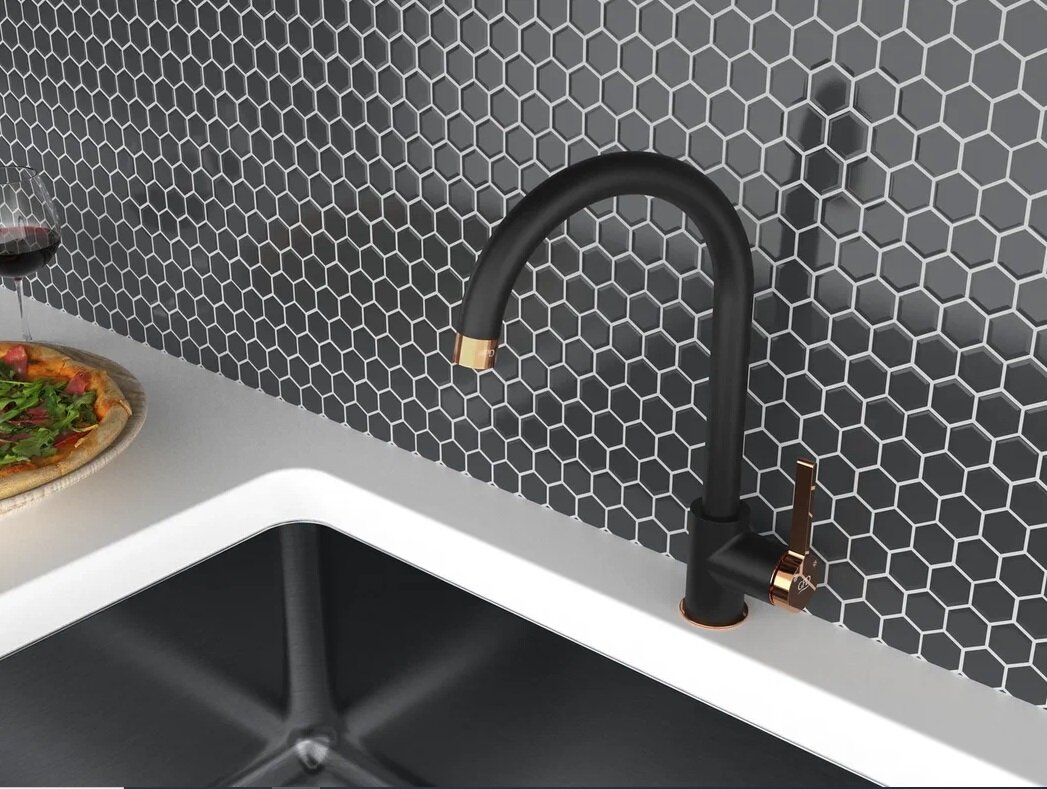 Смеситель GPD Gildo MTE165-S-R для кухонной мойки, черный, розовое золото интересное: