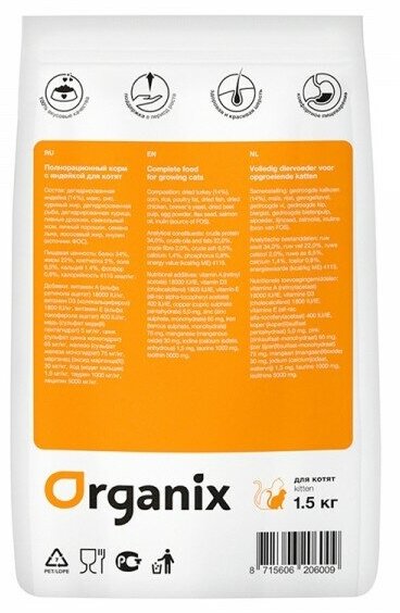 Корм Organix Kitten Turkey для котят, с индейкой, 1.5 кг