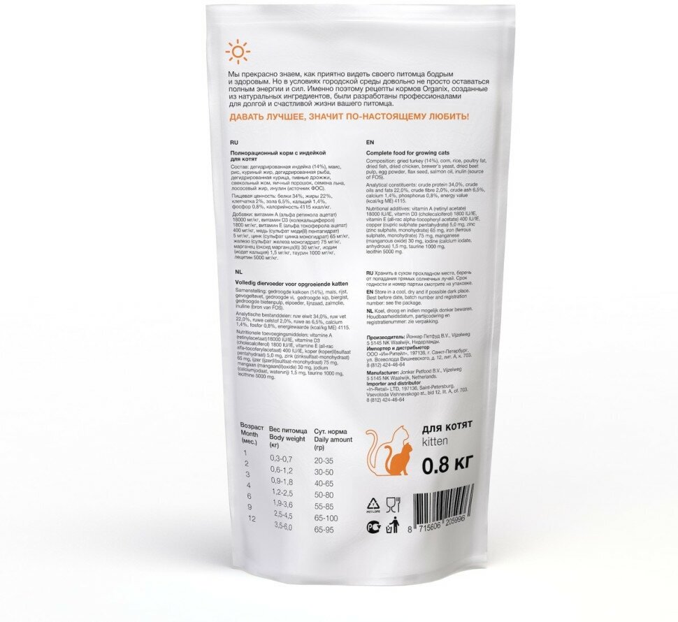 Купить Сухой корм ORGANIX KITTEN TURKEY для котят с индейкой (0,8 кг)