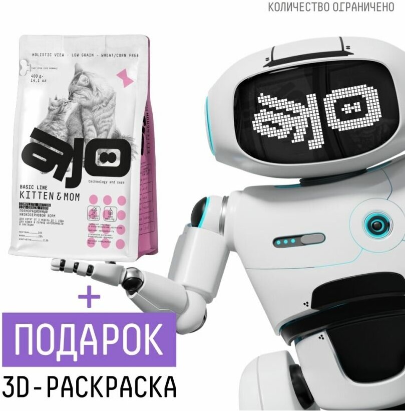Корм для кошек сухой AJO / Айо Cat Kitten&Mom Низкозерновой для котят, беременных и кормящих животных, гранулы 1.5кг