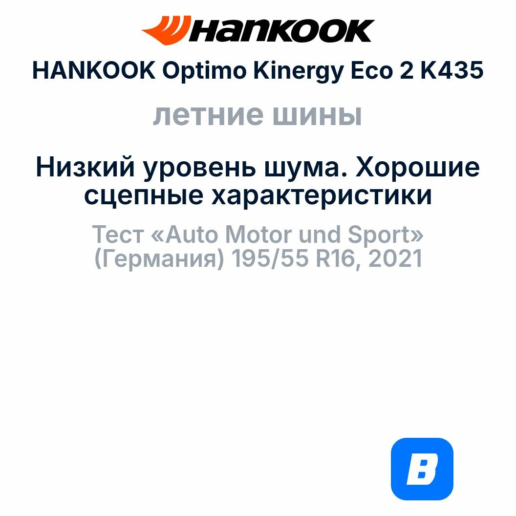 Летняя шина Hankook K435 Kinergy Eco 2 195/55 R16 87H арт.1033129