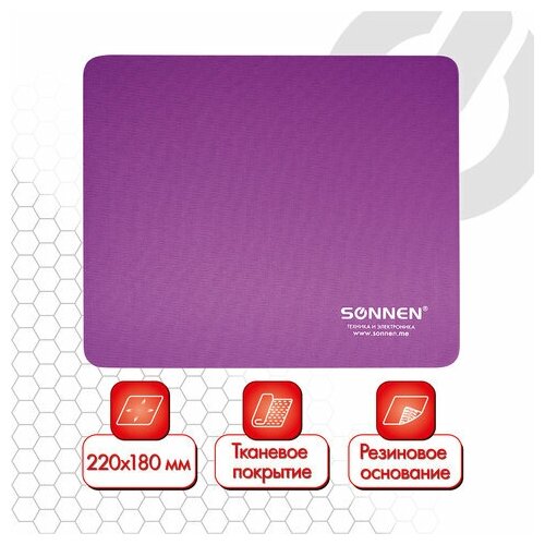 Коврик для мыши SONNEN "PURPLE" резина + ткань 220х180х3 мм, 5 шт