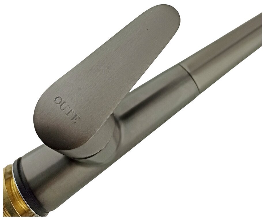 СохранитьСмеситель для кухни/ Кухонный смеситель OUTE с выдвижной лейкой, высота 410 мм, титановый, однорычажный . Монтаж на одно отверстие, на гайке, гибкая подводка 1/2. Тип картриджа: экономичный. интересное: