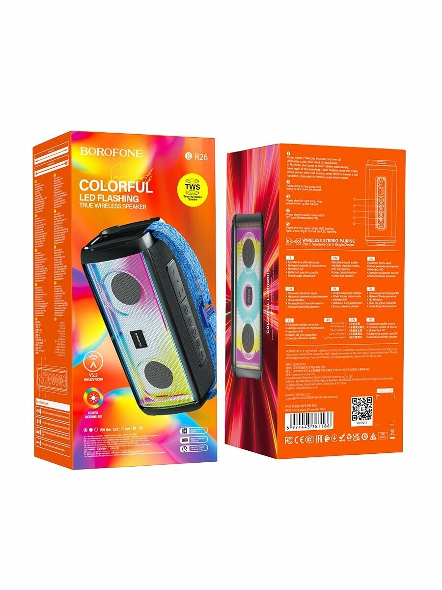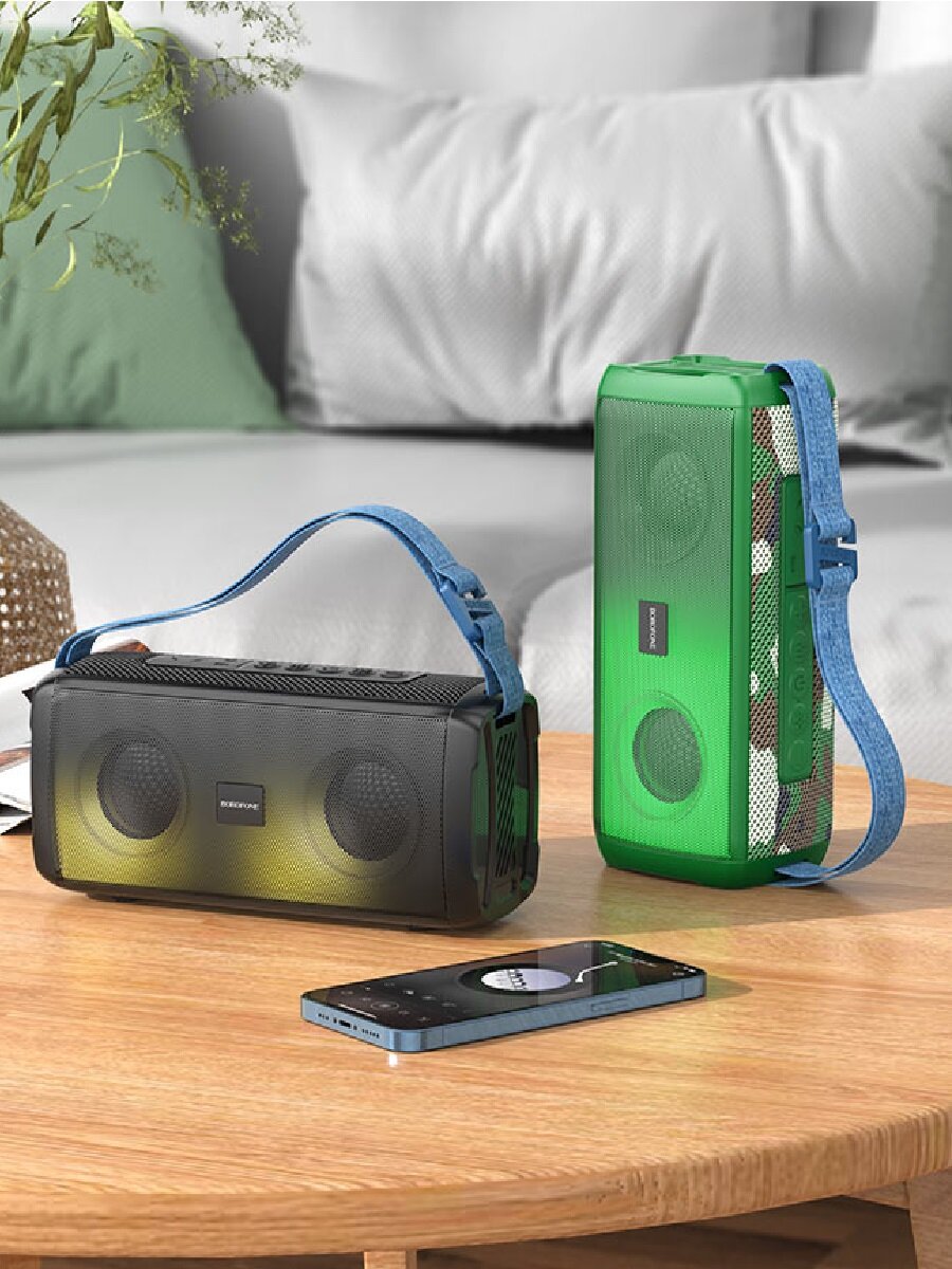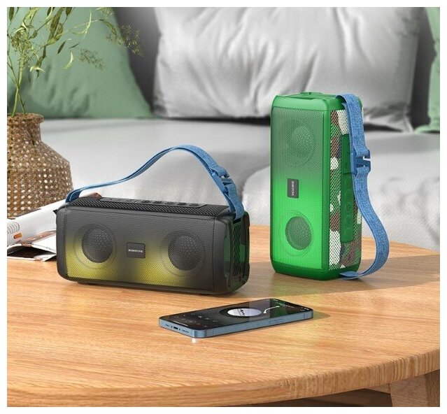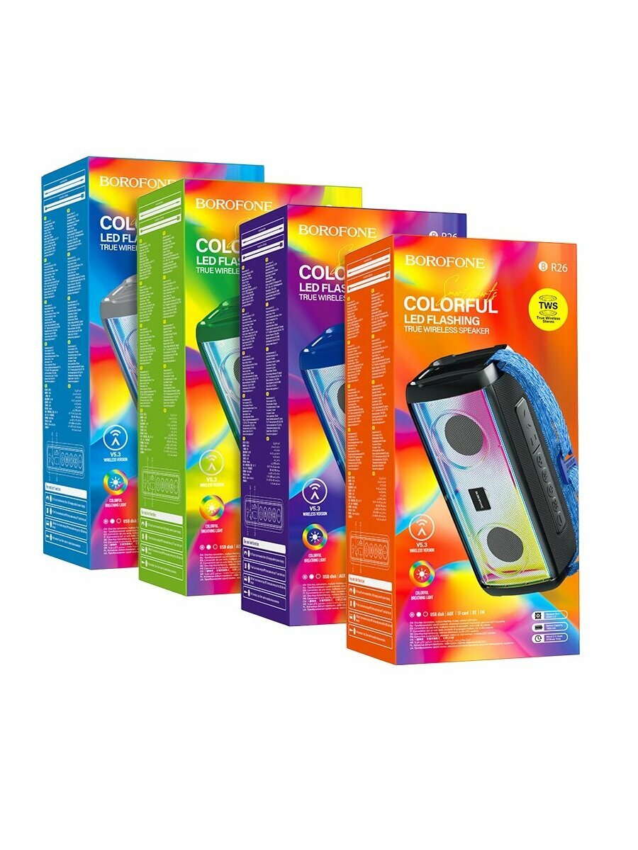 Портативная колонка Borofone BR26 (Bluetooth/USB/AUX/TF/FM/2*5Bт) светящаяся черная