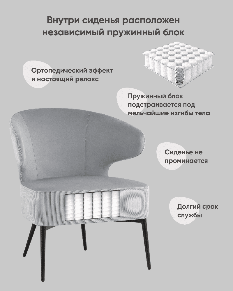 Кресло Кэнди велюр светло-серый