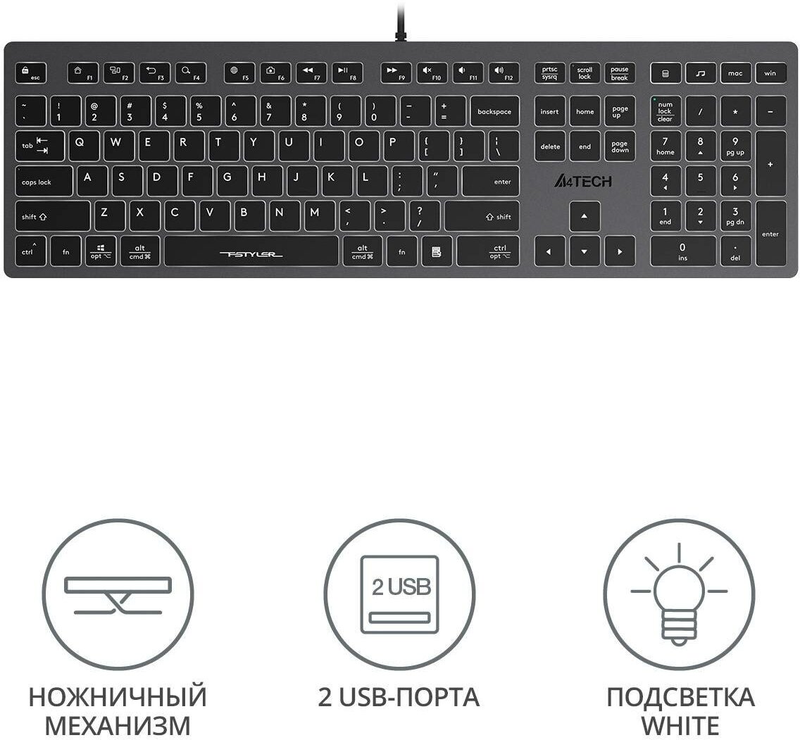 Клавиатура A4Tech Fstyler FX60H, USB, серый