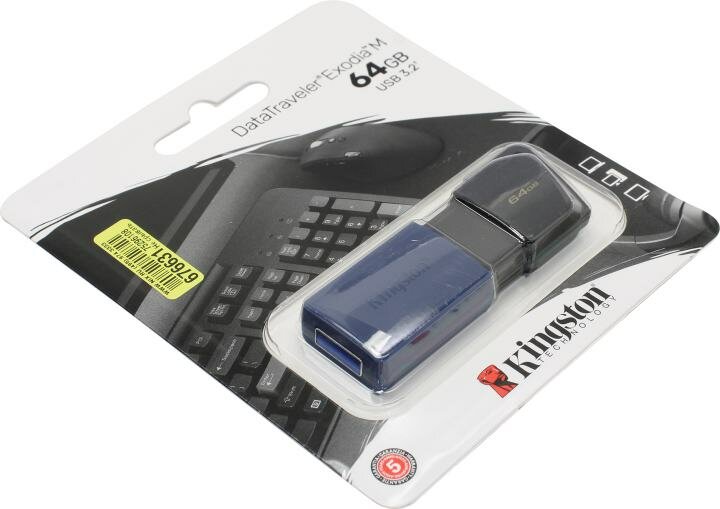 Флешка Kingston DataTraveler Exodia M 64 ГБ, 1 шт, черный/синий