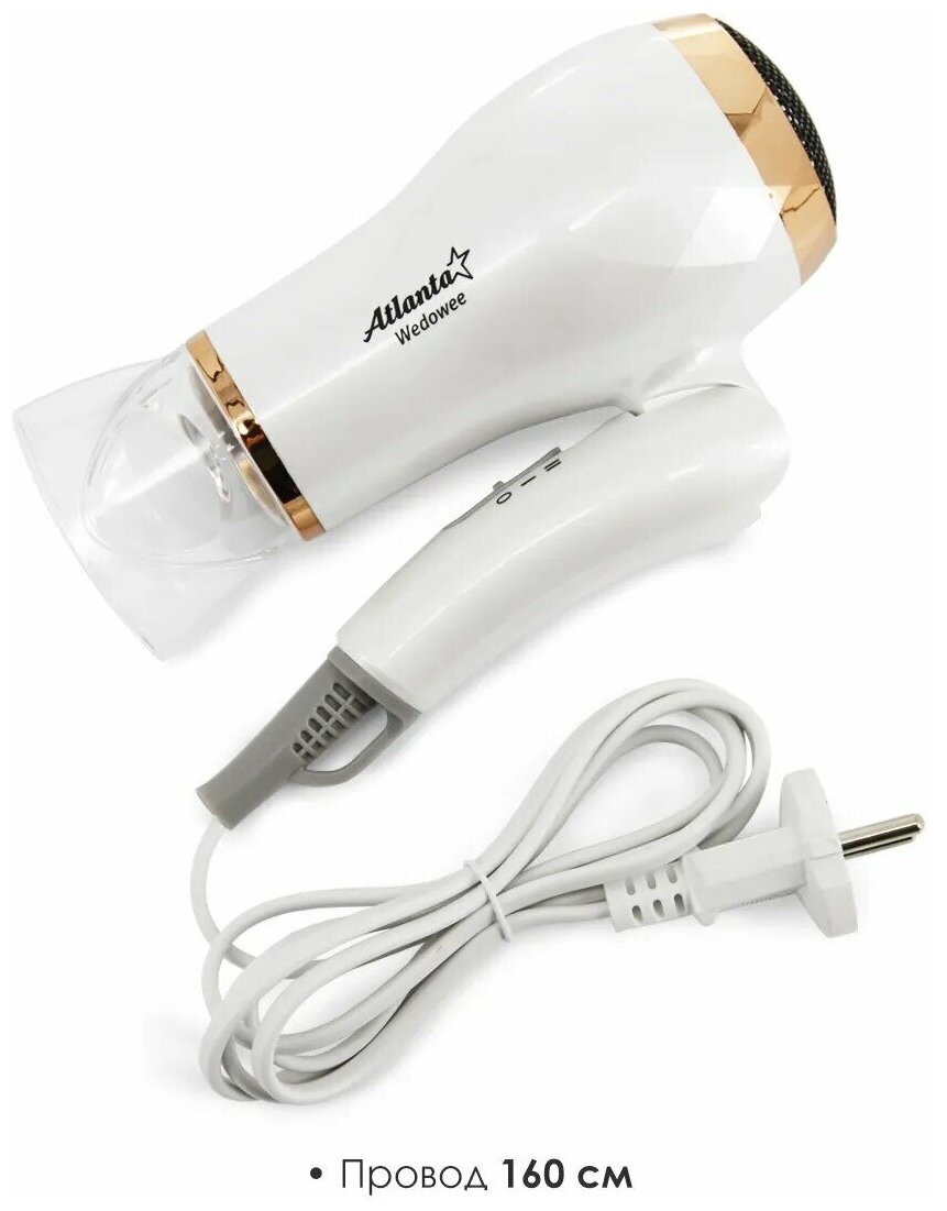 Фен дорожный ATLANTA ATH-6766 мощность 1200 Вт, белый