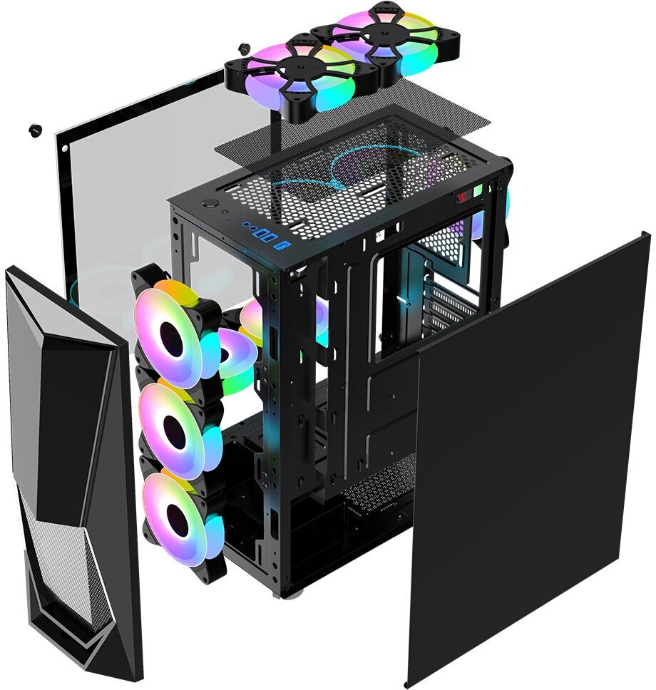 | Плюсы: | Бюджетный корпус с 3 RGB куллерами, за свою цену очень хорош |