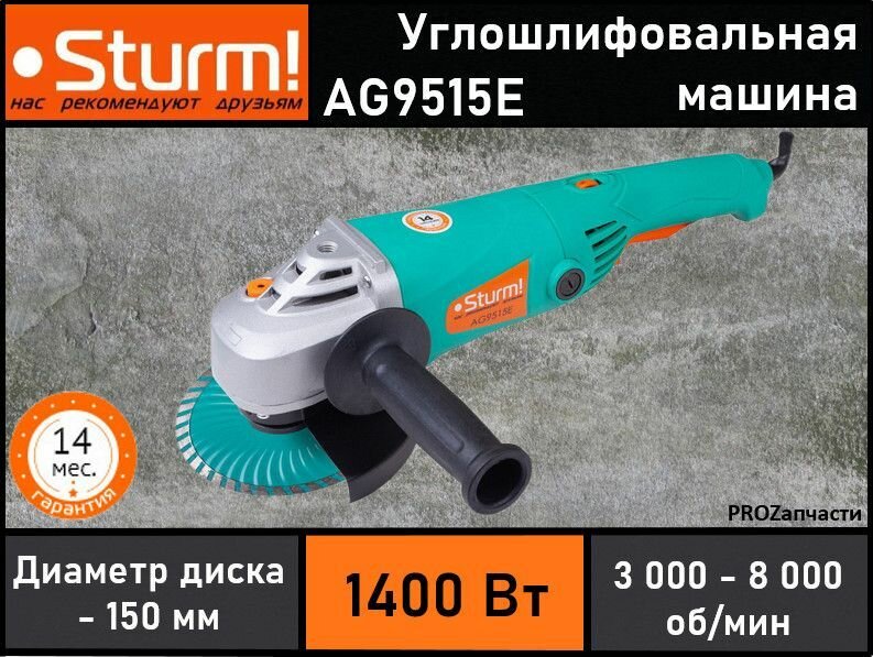 Ниже Вы можете прочитать отзывы на Углошлифовальная машина Sturm! AG9515E 1400Вт 8000об/мин рез.шпин.:M22.2 d=150мм, ознакомится с подробными характеристиками, посмотреть интересные обзоры и фотографии на Углошлифовальная машина Sturm! AG9515E 1400Вт 8000об/мин рез.шпин.:M22.2 d=150мм.