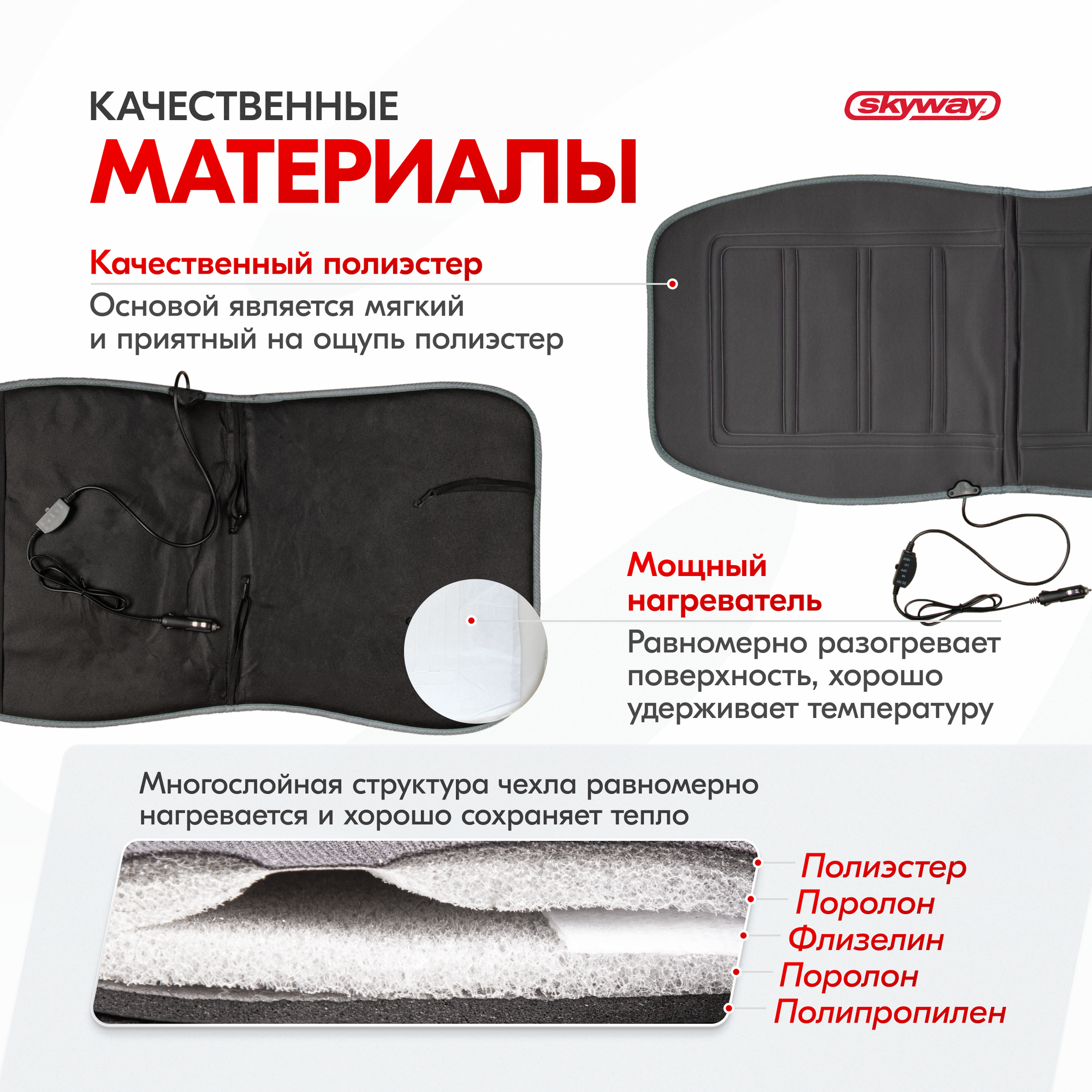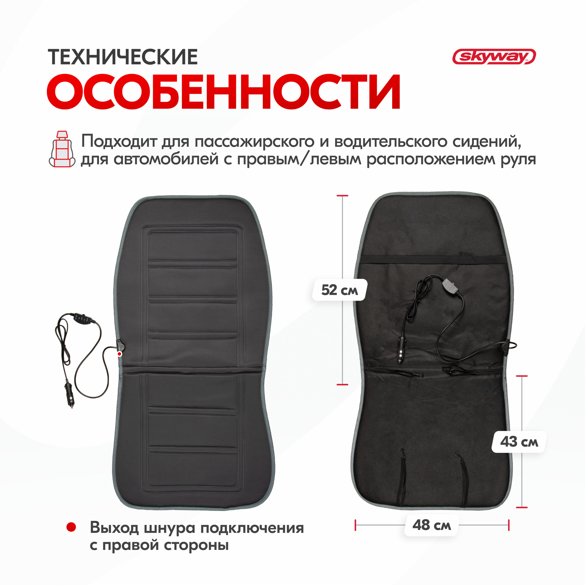 S02201009 Подогрев Сидения Skyway Со Спинкой Терморегул. 2 Режима 95Х47см 12V Серый 2,5А-3А S0220100 Skyway арт. S02201009