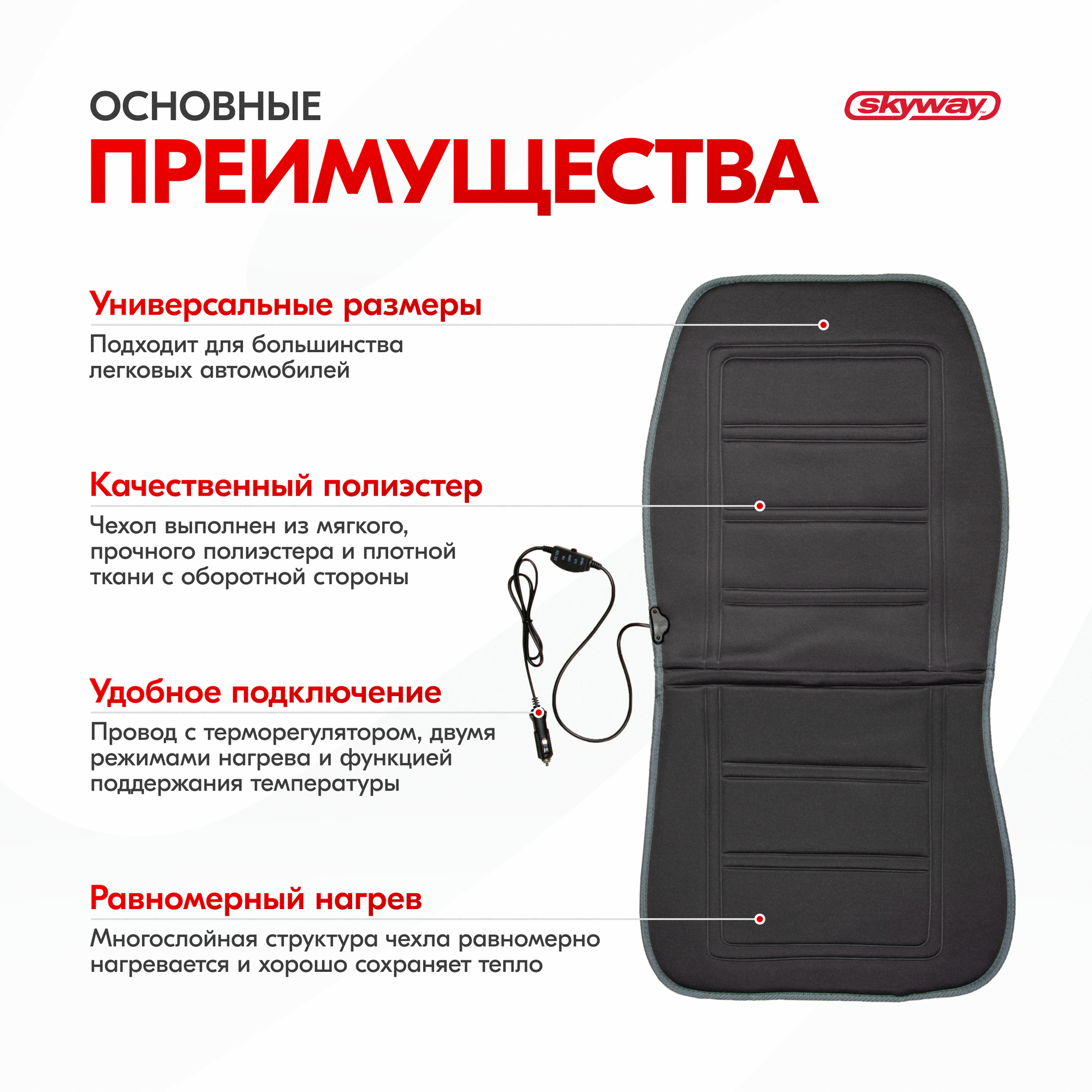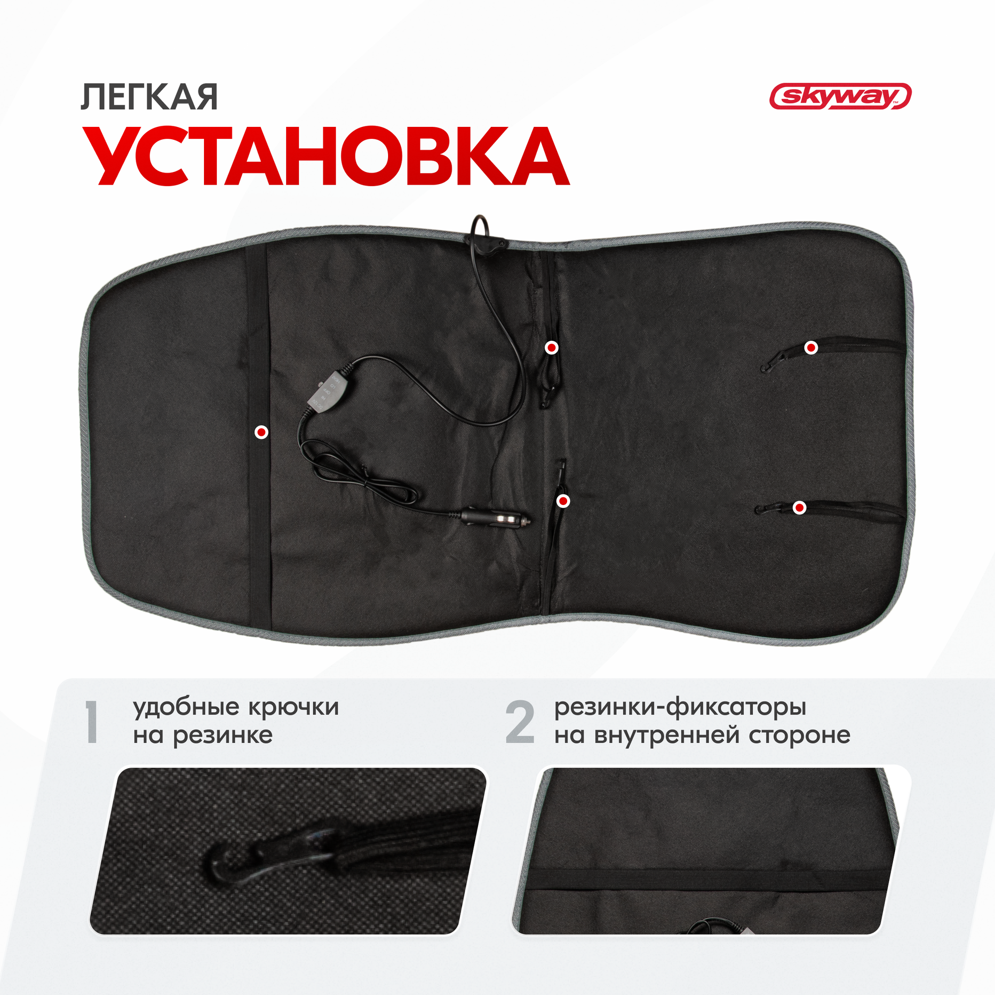 SKYWAY S02201010 Накидка на сиденье с подогревом с терморегулятором (2 режима) 95х47см 12V Черный 2,5А-3А; SKYWAY