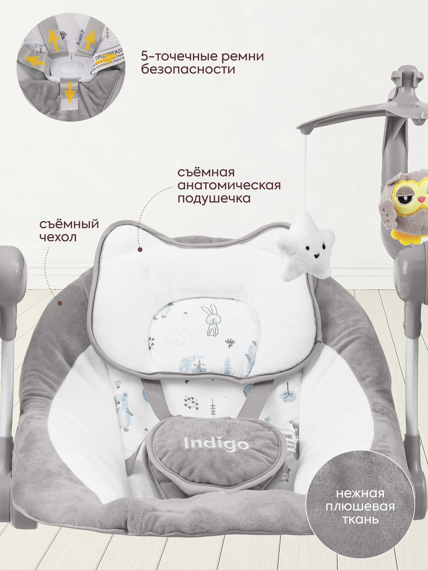 Купить Электрокачели Indigo STAR с мобилем и пультом, серый
