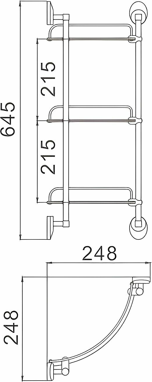 Полка угловая Haiba HB1607-3 стеклянная 3-ярусная с круглыми ножками