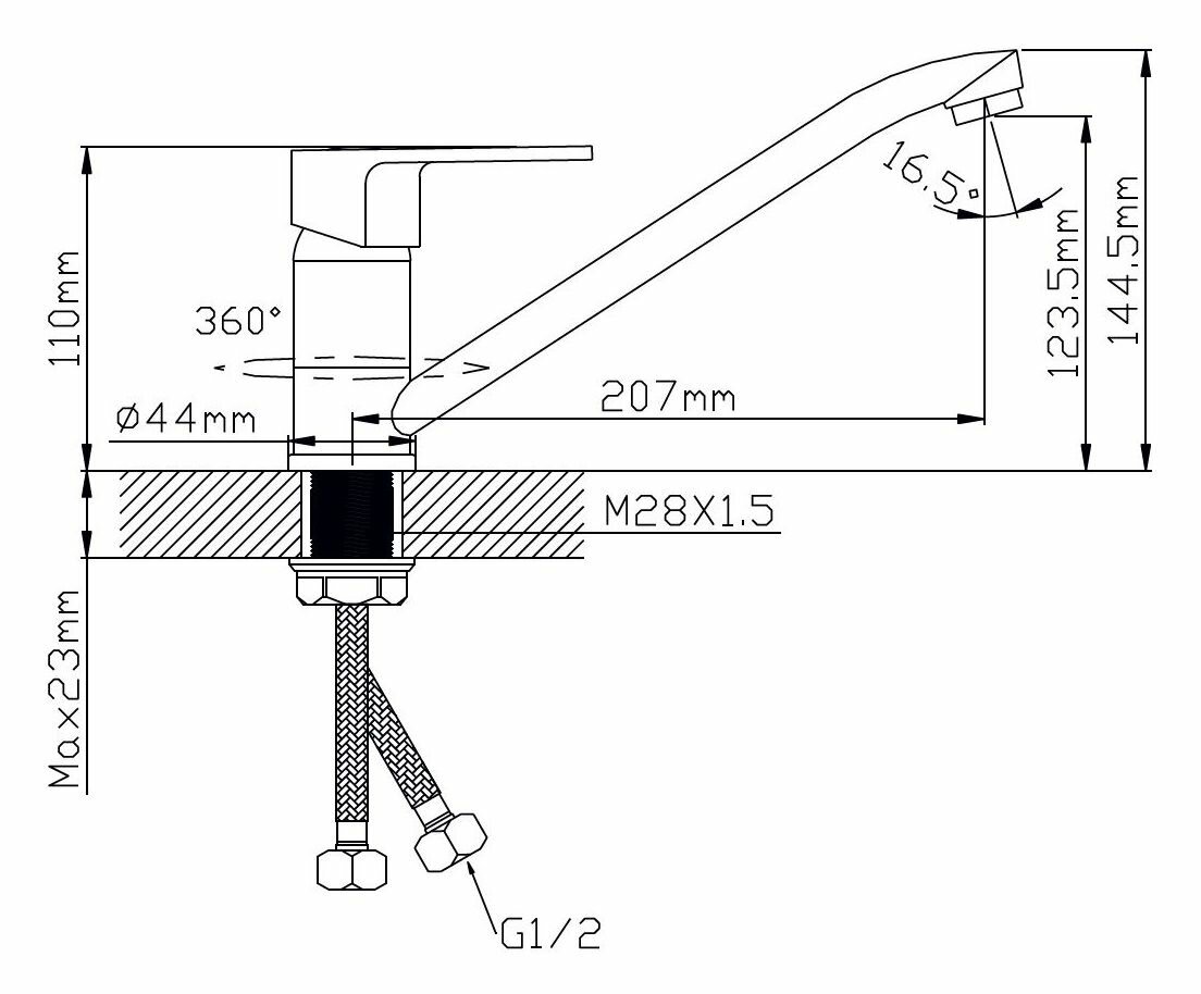 Р49220 Смеситель для кухни с длинным изливом на гайке