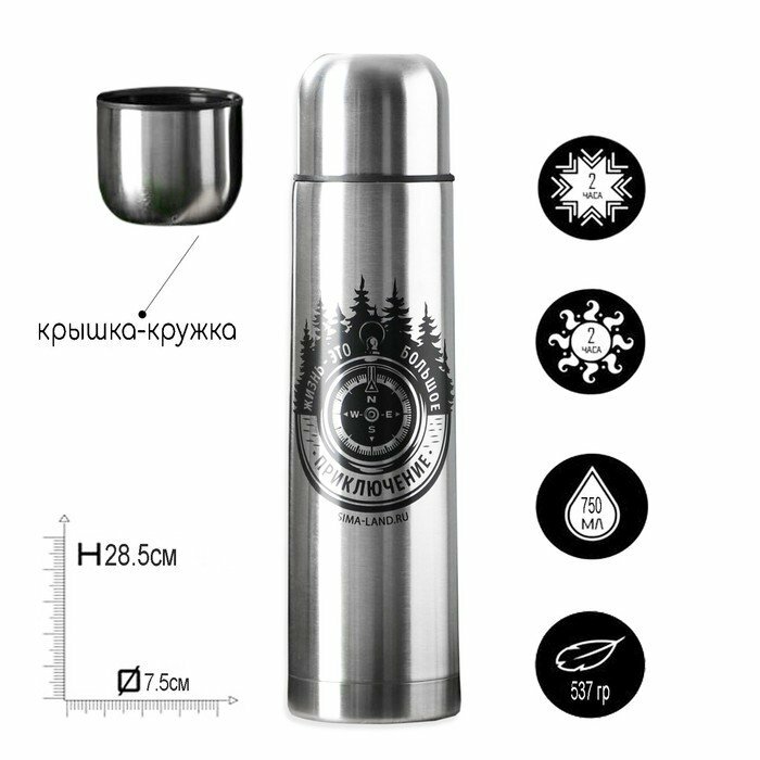 Термос «Жизнь - это большое приключение», 750 мл, сохраняет тепло 16-18 ч интересное:
