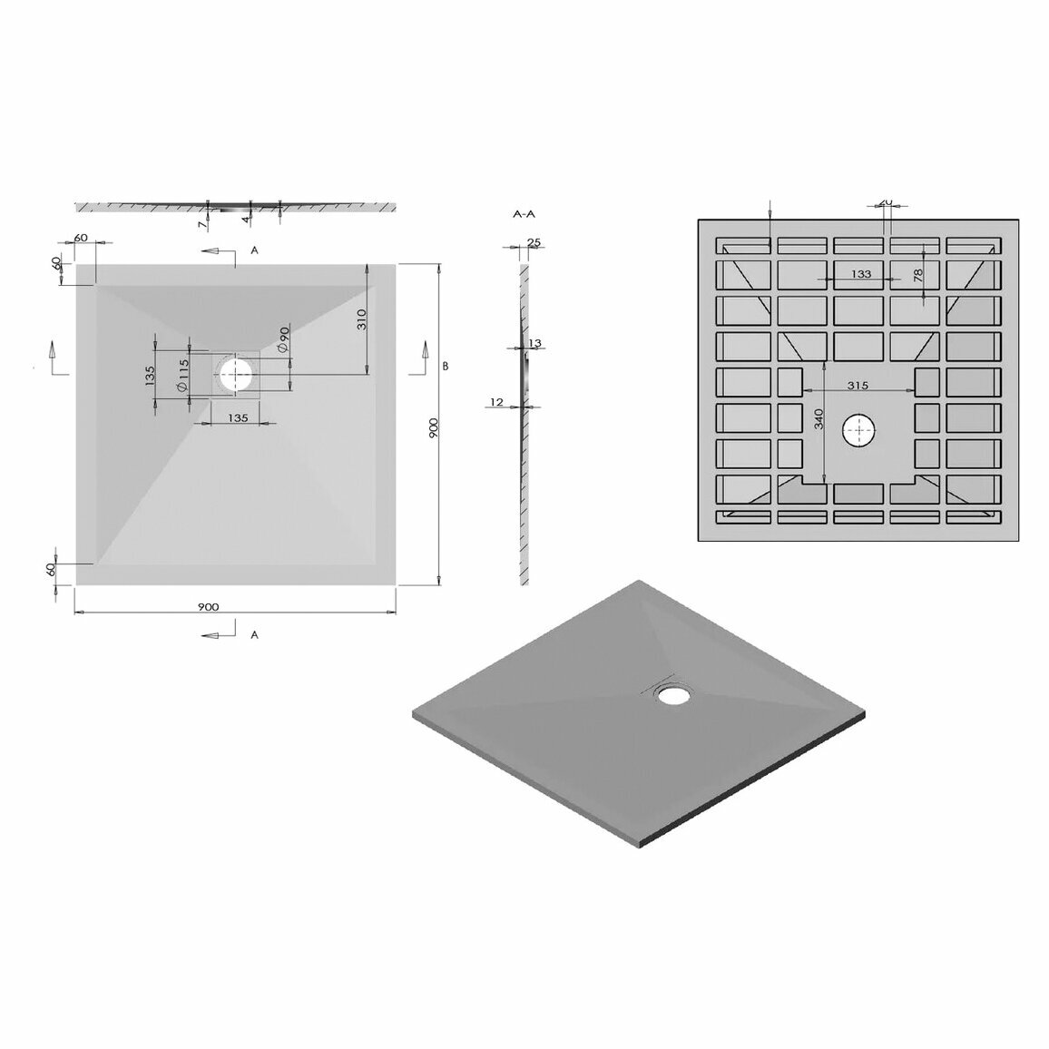 Купить Поддон для душа из искусственного камня Vincea VST-4SR9090G, 900*900*25, серый
