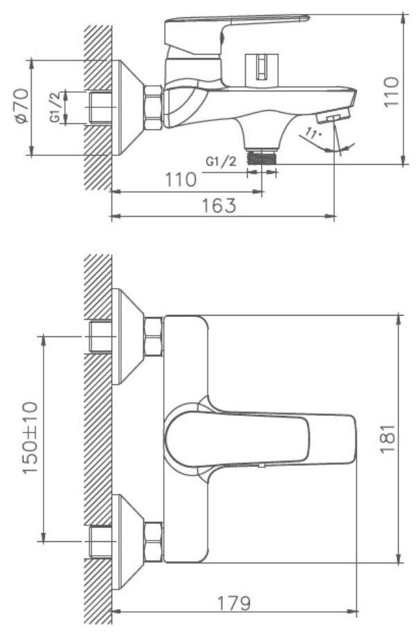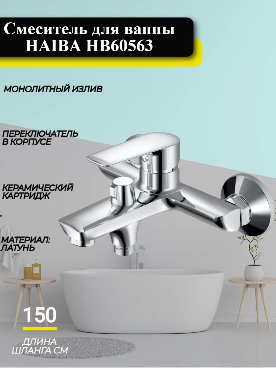 Смеситель для ванны Haiba HB60563 с коротким изливом, хром