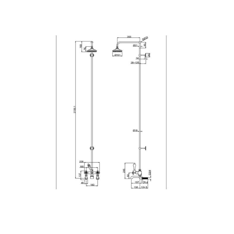 | Дополнительная информация | высота стойки для душа: 2150 мм; диаметр верхнего душа: 151 мм |