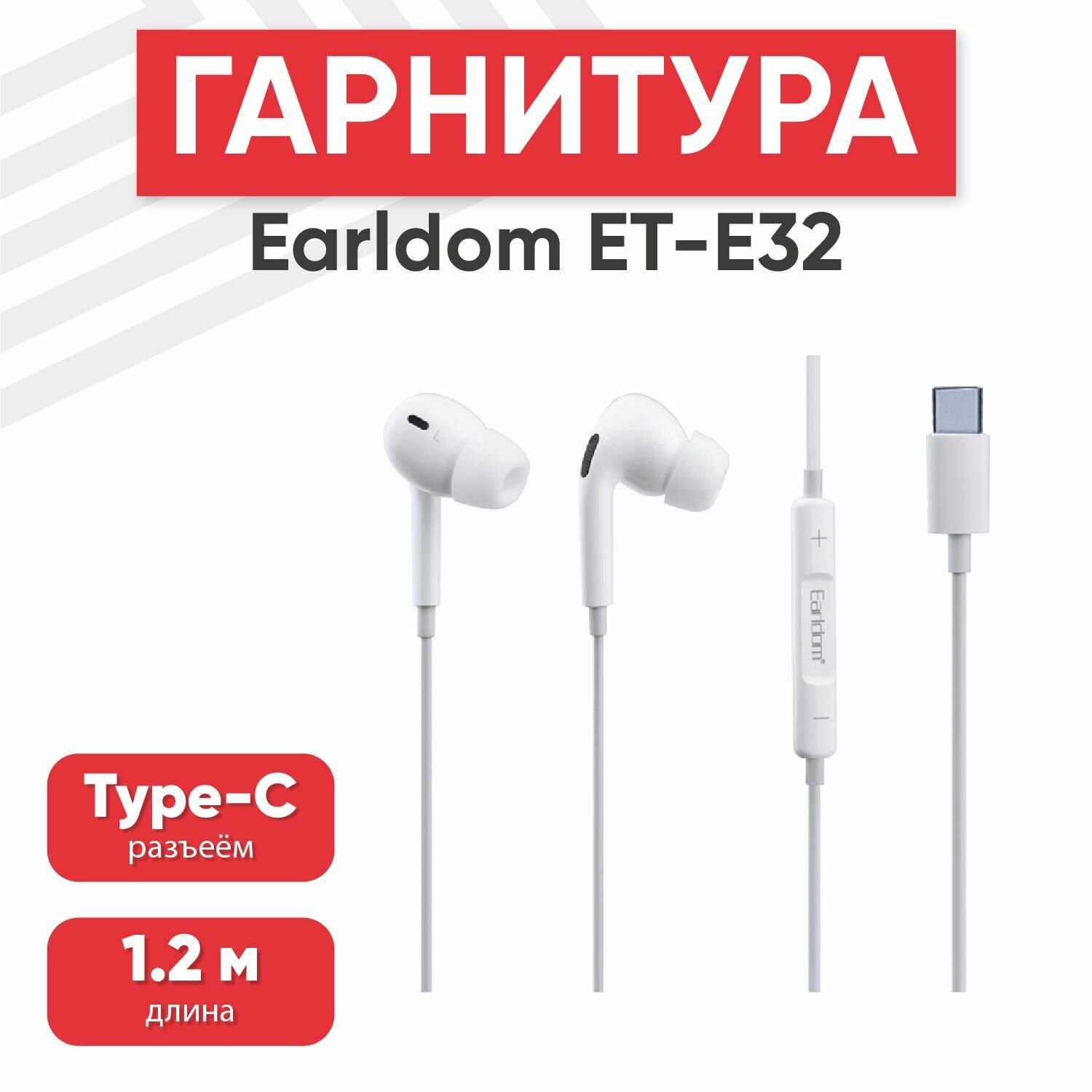 Гарнитура Earldom ET-E32 Type-C, громкость +/-, вставная, 1.2м (белый)