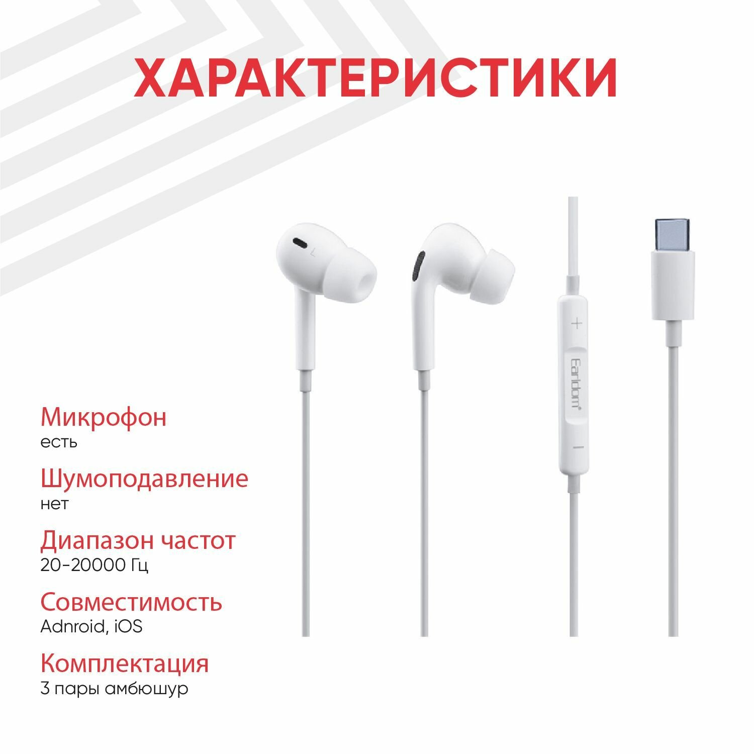 Гарнитура Earldom ET-E32 Type-C вставная с регулятором громкости 1.2м (белая) интересное: