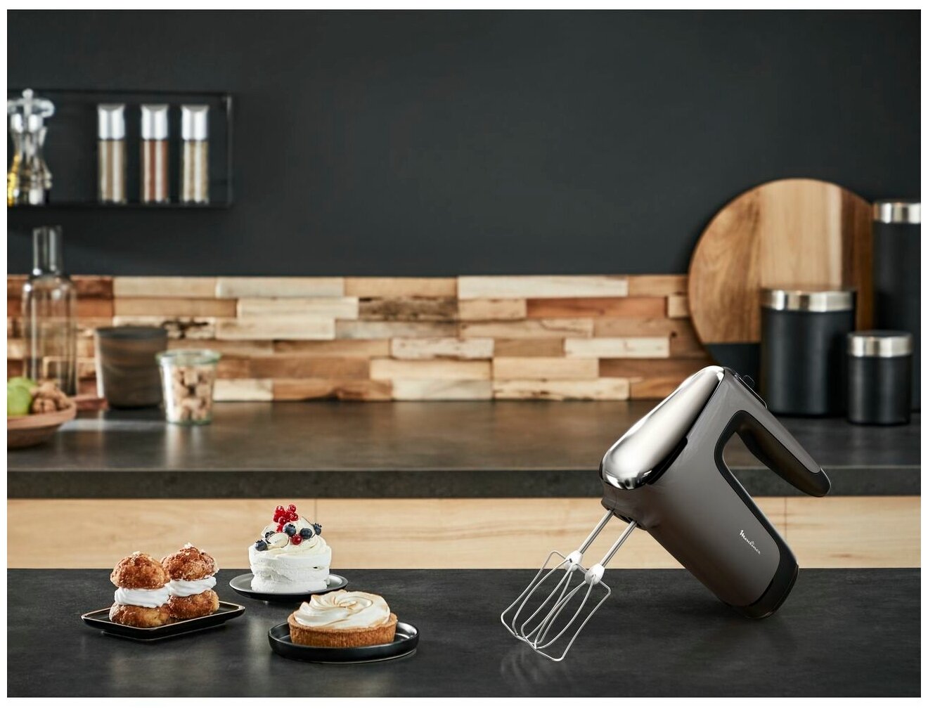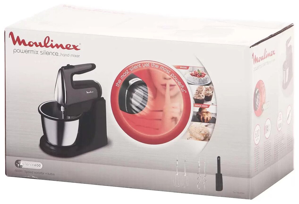 Мощный ручной миксер Moulinex Powermix Silence HM653910 с насадкой-блендером и мини-измельчителем, 600 Вт, черный
