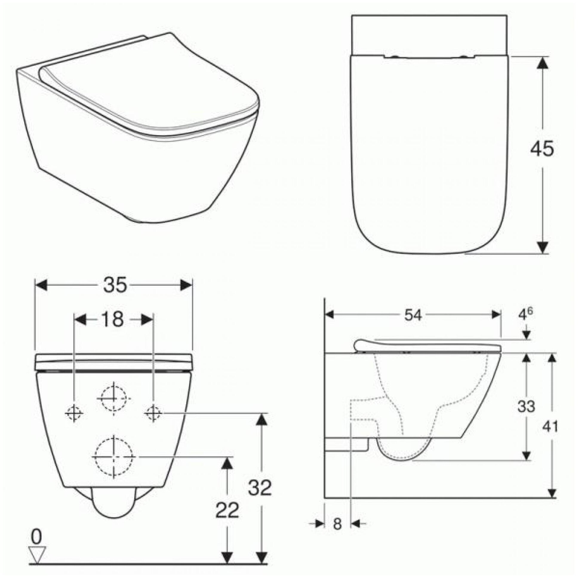 Geberit (Keramag) 500.683.00.2 Комплект подвесного унитаза Smyle Square вертикальный смыв, Rimfree, с сиденьем для унитаза, крышка ,Функция плавного опускания, Белый